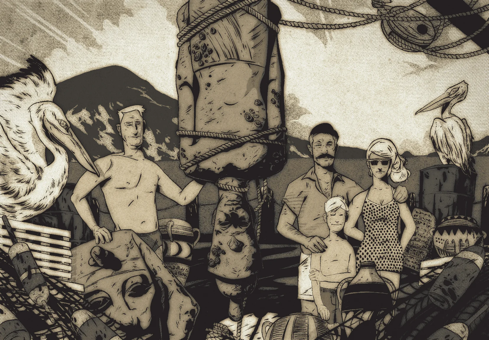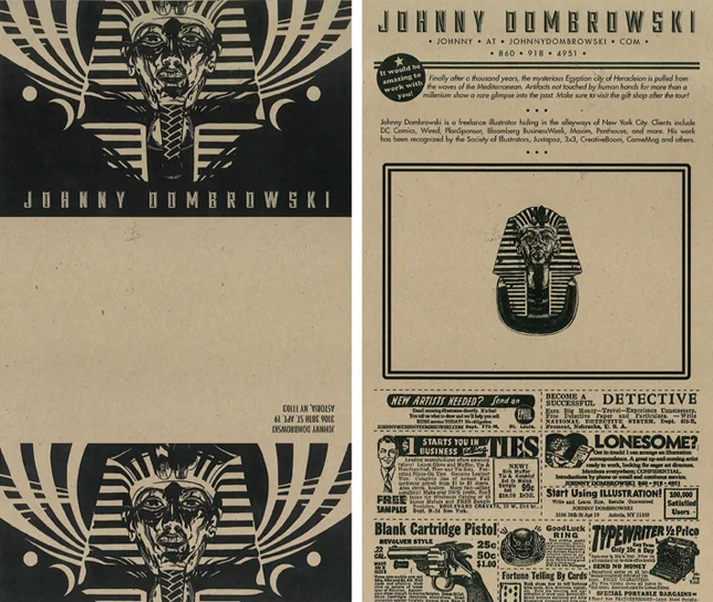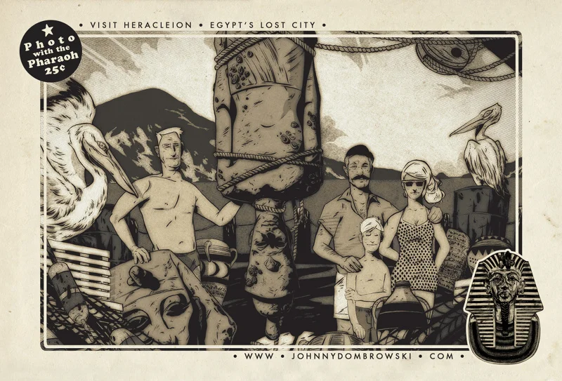 Illustration and packaging created for self-promotion. The idea started with poking fun at the discovered sunken city of Heracleion and evolved in to the family photo plenty of tourist traps are guilty of. Heracleion was an Egyptian city near the coasts of Alexandria that was lost underwater for over a thousand years due to earthquakes and floods during the 6th or 7th century A.D.